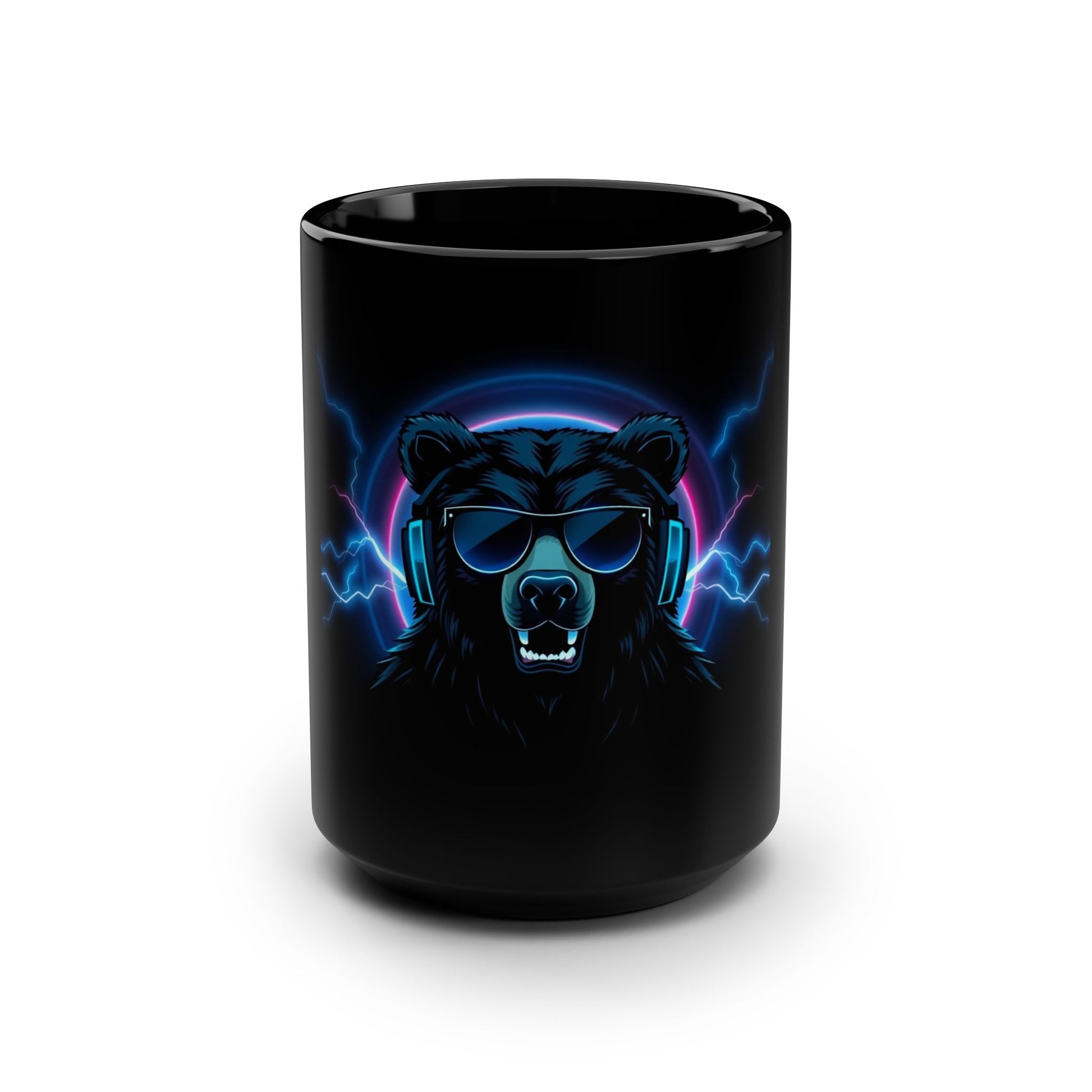 Embrace your inner wild with this stunning 15oz black mug, featuring an electrifying bear design that radiates a cool and vibrant vibe.